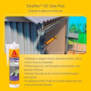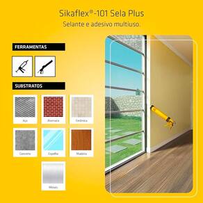 Sikaflex 101 Sela Plus é um selante/adesivo elástico, monocomponente, a base de poliuretano que cura com a umidade do ar, sendo recomendado e adequado para vedação e colagem, oferecendo aderência na maioria dos materiais da construção civil.