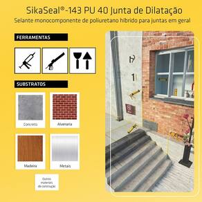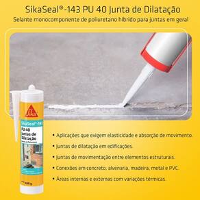 SikaSeal-143 PU 40 Junta de Dilatação é um selante elástico, monocomponente, à base de poliuretano híbrido que cura com a umidade do ar, sendo recomendado e adequado para juntas de movimentação e conexão em aplicações internas ou externas.