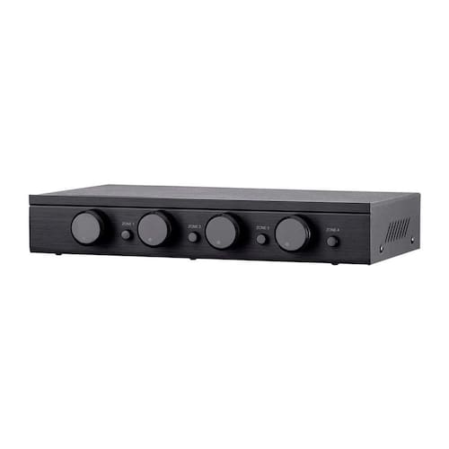 P10 (6,35 mm)Seletor de alto-falante Monoprice SSVC-4.1 de entrada única de 4 canais com controle de volume, proteção de impedância, botões de ligar/desligar de zona individual, preto, número do modelo: 138159