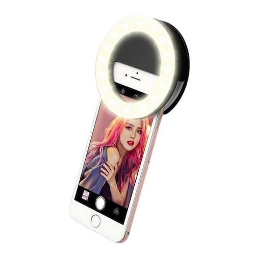 Você pode prendê-lo em qualquer lugar. 1.3 níveis de brilho: leve selfies para qualquer lugar, boates escuras, festas, acampamentos etc. Com este selfie ring light, nunca mais precisaremos preocupar o ambiente escuro. Com 3 níveis diferentes de brilho, você encontrará a iluminação perfeita necessária para suas fotos. 2.36 lâmpadas de longa duração: fornece iluminação suplementar ou lateral para fotografia sempre que houver condições de pouca luz. Também ajuda a obter fotos e vídeos de qualidade superior quando a luz natural não está disponível. Compatibilidade 3.High: a cabeça de recorte pode ser amplamente aberta. Portanto, pode ser aplicado a quase todos os telefones inteligentes do mercado. Faixa de iluminação ultra ampla: pode atender à demanda de luz complementar em amplas faixas e ângulos de iluminação amplos.   níveis de brilho basta pressionar o botão liga / desliga, você poderá mudar para outro nível de iluminação. 36 lâmpadas led serão capazes de fornecer iluminação suficiente para você tirar ótimas selfies.