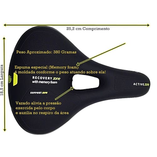 O selim absolute trekking com tecnologia memory foam é indicado pelo seu conforto e resistência à pedais casuais, recomenda-se a inclinação máxima do ciclista em 60 º graus para melhor confortabilidade.