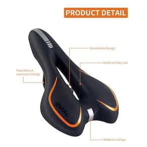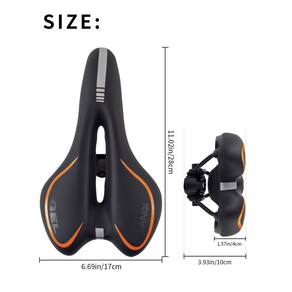 Assento de gel MTB confortável, selim para mountain bike, assento de bicicleta de montanha, assentos de gel respirável, macio e impermeável, almofada de selim para homens e mulheres - laranja - ?Novos materiais de alta qualidade?Acolchoado com espuma de alta elasticidade e alta densidade, à prova de choque; feito de enchimento de gel gorduroso artificial, mais confortável durante a pedalada, comparado ao polímero plástico normal; a superfície acolchoada do assento da bicicleta é feita de couro PVC à prova d'água; o design espesso é bom para reduzir o desconforto. Vamos ficar longe da dor! - ?Design vazado respirável e simplificado?O design oco melhora a respirabilidade, proporcionando fluxo de ar e conforto durante longos passeios. O design simplificado evita fricção na parte interna da coxa. Protege melhor as nádegas do motorista. - ?Amortecedor e faixa reflexiva?Os trilhos duplos de aço inoxidável e materiais de metal altamente elásticos sob o assento da bicicleta proporcionam uma forte capacidade de carga e efeito de absorção de choque. A faixa refletiva pode refletir as luzes ao redor para proteger os ciclistas noturnos. - ?Local de aplicação: nossa almofada de bicicleta será adequada para o seu passeio, seja uma montanha, cidade rodoviária, pode ser usada em bicicletas de montanha, bicicletas de estrada, mini bicicletas, bicicletas elétricas e bicicletas estacionárias. - ?Serviço de marca?Comprimento dos selins de bicicleta: 17 cm x 28 cm; Peso: 500 g; Braçadeira de assento de diâmetro interno de 7/20.3 cm para selins de trilho padrão. Se você tiver alguma dúvida, .