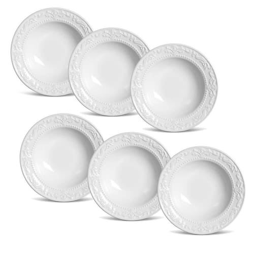 Conjunto de Pratos Fundos Porto Brasil Acanthus em Faiança Feldspática Branco - 6 Peças
