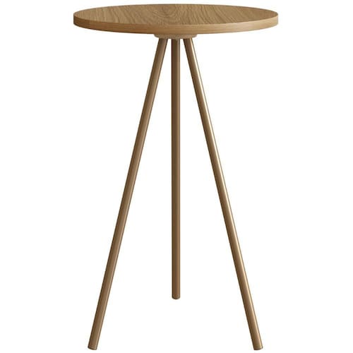 Mesa Lateral Redonda Artesano 53,5 cm (altura) em MDP Hanover Estrutura Metálica em Aço Dourado - Marrom