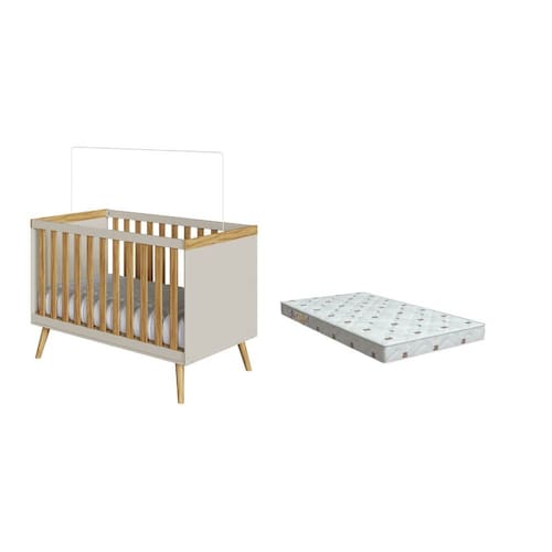 Berço Moveis Peroba Sky Americano minicama MDF com colchão - Off White | Amendola