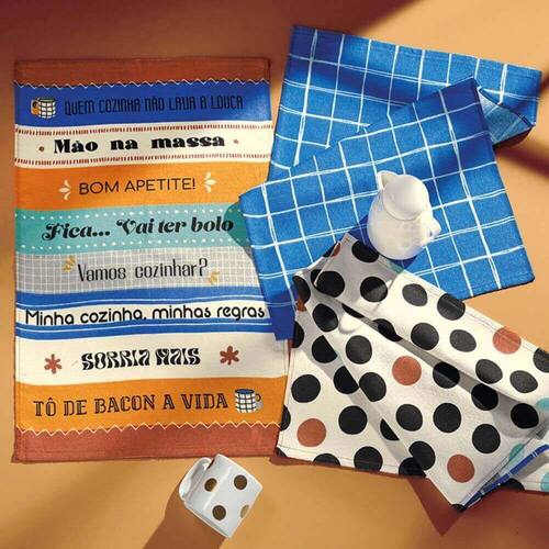 Kit Pano de Prato Atoalhado Estampado com 3 unidades - Dohler - Azul doce