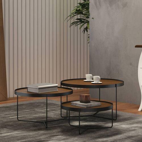 Conjunto mesas de centro redondas modernas - Apollo - Montanhês Móveis - Marrom