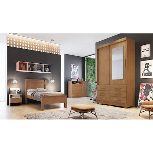 Guarda Roupa Solteiro com Espelho 2 Portas 6 Gavetas - Buriti-Cumaru - Móveis Novo Horizonte - Marrom