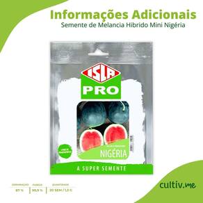 Semente de Melancia Hibrido Mini Nigéria (20 Sementes) ISLA Descrição * A Melancia Mini Nigéria é a escolha perfeita para quem busca inovação no cultivo e um sabor excepcional à mesa. * Ideal para hortas domésticas que não abrem mão de qualidade profissional, esta variedade se destaca pelo formato compacto e visual elegante. * Diferente das melancias convencionais, a Mini Nigéria oferece praticidade no consumo e alta aceitação no mercado gourmet. Características * Variedade: Melancia Híbrido Mini Nigéria * Tipo de fruto: Mini (compacto e uniforme) * Polpa: Vermelha, suculenta * Renascem: RS-00342/2005 A ISLA é referência nacional em sementes de alta qualidade, desenvolvidas com tecnologia e pesquisa para oferecer produtividade, resistência e sabor superior em cada cultivo. Nós da CULTIV.ME trabalhamos desde 2013 para trazer os melhores produtos ao alcance de todos. CULTIV.ME o verde que faltava!