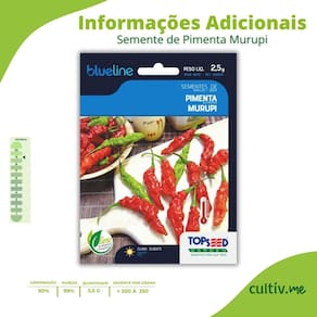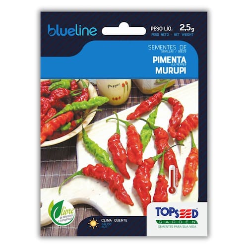 Descrição * A Pimenta Murupi é uma variedade típica da região Norte do Brasil, muito apreciada pelo sabor intenso e pela ardência marcante. * Seus frutos são alongados, finos e enrugados, medindo cerca de 3,5 x 1 cm, com coloração que varia do verde ao vermelho intenso quando maduros. * Possui aroma forte e sabor picante característico, sendo ideal para preparo de molhos, conservas e pratos regionais. * Adapta-se bem a climas quentes e úmidos, proporcionando alta produtividade e plantas vigorosas. * Como plantar: Revolva o solo em no mínimo 20 cm de profundidade até que fique solto, sem torrões. * Para melhorar o solo, adicione esterco e/ou húmus na proporção de 10%. * Misture adubo NPK balanceado, considerando 300 g para cada 10 m² de canteiro. * Para plantio em vasos, utilize substrato de qualidade e adicione 5 g de adubo por litro de vaso. * Após o plantio, mantenha o solo úmido, mas sem encharcar, para garantir o melhor desenvolvimento das plantas.