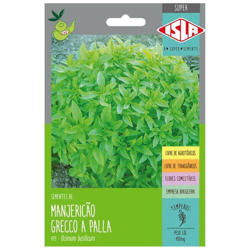 Descrição * Nome Científico: Ocimum basilicum L. * Planta vigorosa de porte pequeno e tolerante ao calor. * Folhas pequenas e muito perfumadas, com um leve sabor que lembra cravo. * Indicada para cultivo no verão e no inverno.