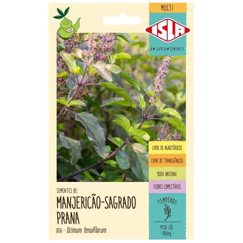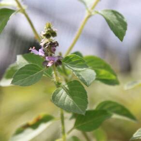 Descrição * Nome Científico: Ocimum tenuiflorum L. * O manjericão é uma das ervas mais fáceis de cultivar na horta. * Podemos plantar em vasos, floreiras e também no solo.* Em meio aos canteiros ou formando um efeito de bordadura ao redor dos cultivos principais. * O manjericão sagrado, é uma planta aromática e com folhas de coloração verde-claras. * Atinge 30-60 cm de altura e suas flores são usadas para fins medicinais.