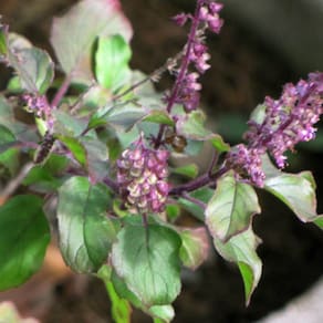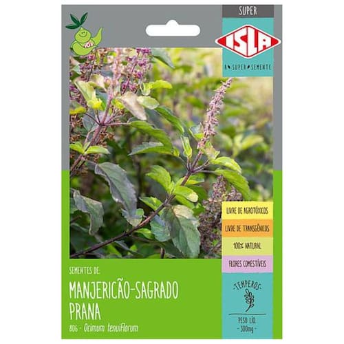 Descrição * Nome Científico: Ocimum tenuiflorum L. * O manjericão é uma das ervas mais fáceis de cultivar na horta. * Podemos plantar em vasos, floreiras e também no solo.* Em meio aos canteiros ou formando um efeito de bordadura ao redor dos cultivos principais. * O manjericão sagrado, é uma planta aromática e com folhas de coloração verde-claras. * Atinge 30-60 cm de altura e suas flores são usadas para fins medicinais.