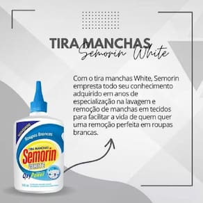 Semorim Tira Manchas White Power Concentrado Roupas Brancas Seja muito bem vindo à Comercial Kínesis. CARACTERÍSTICAS: - Embalagem: 100ml - Detergente para pré-lavagem - Para roupas brancas - Aliado com o exclusivo bico aplicador que alcança todos os cantos das roupas e evita desperdícios - Elimina manchas em apenas uma aplicação - Eficiência e praticidade na remoção de manchas de tecidos