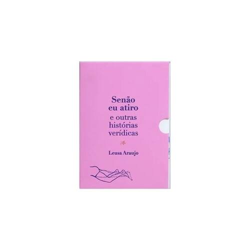 Senão eu atiro e outras histórias verídicas, de Leusa Araujo, traz seis contos marcados por precisão descritiva, personagens de comportamentos perturbadores e desfechos imprevistos em histórias construídas a partir da experiência pessoal da autora e de casos judiciais. Leusa Araujo constrói seus contos com linguagem coloquial e uma dicção seca, usando como técnica principal de narração os diálogos desconcertantes e os fluxos de pensamento que mergulham na interioridade dos personagens, o que favorece o sentimento de solidão e aridez presente dos textos. A matéria escolhida para as narrativas tampouco permite alívio: um suicídio malsucedido (“A gorda que caiu do céu”); paralisia do sono (“Experiências extracorpóreas”), a virulência letal de um pintor (“Senão eu atiro”); o desamparo e a hipocrisia das relações (“A mendiga do Macuco”); as tensões sociais no retrato de uma paixão adolescente (“Daiane”). O conto que fecha o volume (“Iracema”) faz um triste, porém belo, contraponto: um filho que está prestes a perder a mãe revira o baú da família e reencontra relíquias há muito esquecidas, como álbuns de fotografia e livros. O projeto gráfico de Silvia Nastari explora o universo temático das histórias e o processo de trabalho de Leusa Araujo. O miolo tem costura aparente, e uma luva impressa em serigrafia sobre papel rosa acondiciona o livro, aludindo aos procedimentos de pesquisa e arquivamento. O amarelado do papel pólen e a tipografia clássica juntam-se ao caráter efêmero dos materiais em que o projeto se inspira, como o cor-de-rosa do papel manilha, os recortes de jornais da época e os itens de arquivamento e colecionismo. As imagens – retiradas de enciclopédias e manuais antigos – traduzem o teor de fragilidade e inacabamento dos objetos de arquivo, tanto pelo traço quanto pela impressão em carimbo. As ilustrações das sobrecapas foram impressas manualmente nas cores azul, preto e roxo. Assim, cada exemplar do livro é único, pois a disposição dos carimbos nas sobrecapas não se repete em nenhum dos volumes. Marca: QUELONIO EDITORA