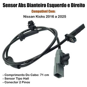 Sensor abs dianteiro esquerdo e direito Aplicação: Características: - ótima qualidade e durabilidade. Especificações: - traseiro - direito - comprimento: 71 cm - sensor: 39mm - conector: 2 pinos - tipo: hall Códigos: 479105ra0a esa086 0265004284 120510 Dúvidas frequentes Qual horário de atendimento O horário de atendimento é das 08:00 às 17:30 hrs. Ainda tem dúvidas Utilize o campo de perguntas em caso de dúvidas e somente clique em comprar após a plena certeza em honrar a compra e concordar com as condições descritas acima. Importante Não nos responsabilizamos por instalação mal realizada; a instalação deve ser feita por um especializado. De um novo visual para o seu carro, aqui você encontra os melhores produtos com os melhores preços Imagem meramente ilustrativa. Marca: Não Informado