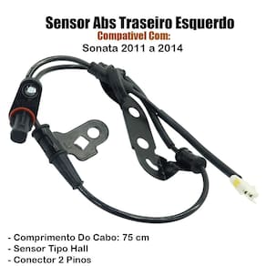 Sensor abs traseiro esquerdo Aplicação: Características: - ótima qualidade e durabilidade. Especificações: - traseiro - direito - comprimento: 75 cm - sensor: 27 mm - conector: 2 pinos - tipo: hall Códigos: 598103s000 599103s300 120336 Dúvidas frequentes Qual horário de atendimento O horário de atendimento é das 08:00 às 17:30 hrs. Ainda tem dúvidas Utilize o campo de perguntas em caso de dúvidas e somente clique em comprar após a plena certeza em honrar a compra e concordar com as condições descritas acima. Importante Não nos responsabilizamos por instalação mal realizada; a instalação deve ser feita por um especializado. De um novo visual para o seu carro, aqui você encontra os melhores produtos com os melhores preços Imagem meramente ilustrativa.