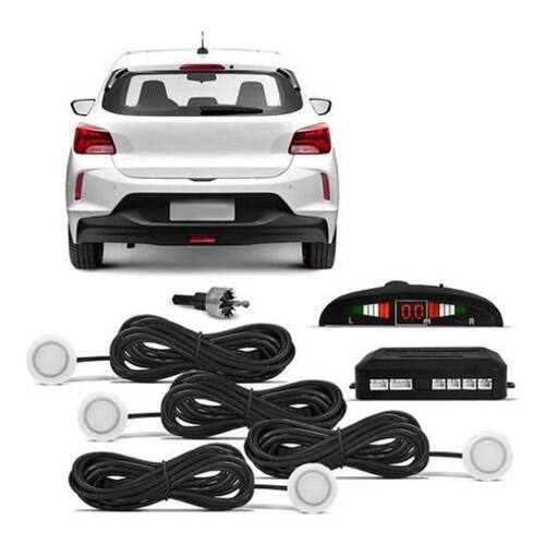 Distância de aproximação: 10 a 250cm Cores: branca Compatibilidade universal Sensores acionados pelo engate da marcha ré Display de led que mostra distância do objeto Cores do led que se alteram conforme a proximidade Tensão: 12v dc Consumo de corrente: 20 200ma Aviso sonoro através de beep em 4 estágios Auxílio ao motorista na realização de manobras de estacionamento Sensores compatíveis com para-choques de metal e de plástico Resistente a diferentes condições climáticas Diâmetro do sensor: 2 cm Dimensões do monitor: 7x1,5cm Range de tensão: 9 ~ 16v dc Área de detecção: 0 ~ 2,5cm Temperatura de funcionamento do display: -20° ~ + 60°c Frequência de ultrassom: 40khz