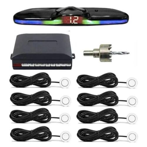 Sensor de estacionamento dianteiro e traseiro - 8 pontos na cor branca Características - display nova geração em led color e bip com liga e desliga. - cápsulas 18mm dianteiras com plug rápido e extensão extra. - cápsulas 18mm traseira com plug rápido e extensão. - central única digital. - 1 ano. - sistema de sinal universal dianteiro o sistema do sensor dianteiro pode ser ligado em qualquer sinal positivo para ativar o sensor . Conteúdo da caixa - 01 central eletrônica - 08 sensores - 01 broca tipo serra copo - 01 display digital - 02 fitas dupla face - 01 cabo de alimentação 12v - 01 manual de instalação Produtos enviados com . -verifique a compatibilidade do produto com seus equipamentos para que não haja problemas na hora do uso -para produtos que necessitam instalação, antes da mesma, deve ser feito o teste em bancada para que não ocorra a perda da . -para produtos que necessitam instalação, a mesma deve ser feita por um profissional capacitado, não nos responsabilizamos por uso indevido ou instalação incorreta. Politica de - troca / devolução A devolução por instalação ou outros motivos Poderá ser feita em até 7 dias corridos após o recebimento do produto, desde que com a embalagem , junto com todos os acessórios que o acompanham, manual e embalagem deverão estar preservados, sem fitas coladas, etiquetas ou algo que a descaracterize. O produto não poderá ter sido instalado, e sim somente testado em bancada, esse é um procedimento comum feito por instaladores profissionais antes de fixar o produto no veículo, e obrigatoriamente todos os produtos que exigem instalação devem ser instalados por profissionais devidamente habilitados. Devolução ou troca por defeito de fabricação Produtos com defeito somente serão trocados se cumpridas as mesmas condições de devolução, de não instalação, dentro dos 7 dias corridos após o recebimento, sem marcas de uso, do contrário serão enviados à assistência técnica do fabricante para conserto e devolução dentro dos prazos que rege a lei do consumidor vigente cdc . A do fabricante Alguns fabricantes dispõem de direta ao consumidor, e nesse caso a troca por defeito, ou a de assistência técnica só poderá ser feita diretamente nos postos autorizado, não sendo feita através do revendedor. Mesmo estando dentro do prazo de 7 dias corridos do recebimento, produtos como drivers e super tweeters, possuem somente para defeitos de fabricação, não são cobertos queima ou de reparo, seja ele de qualquer natureza que não a de fabricação. Não serão aceitos devoluções de produtos avariados, queimados, riscados, amassados, por instalação, manuseio, uso ou transporte incorretos, fora da embalagem ou com a mesma que sofreu danos.