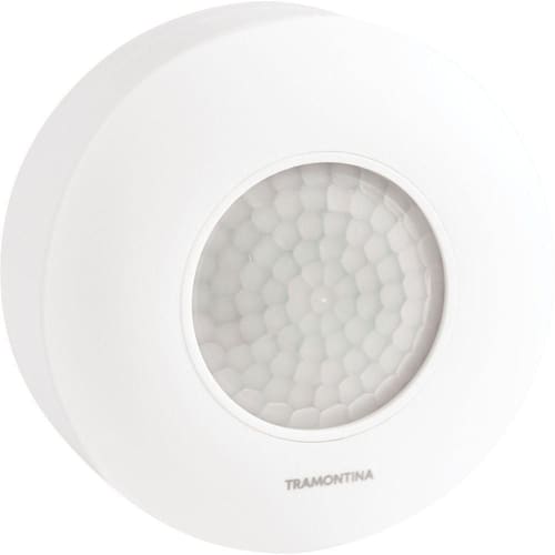 Sensor De Presença 360 De Sobrepor Em Teto Tramontina Bivolt Com Fotocélula Branco Tramontina Sensor de Presença 360 de Sobrepor em Teto Tramontina Bivolt com Fotocélula Branco Tramontina - Com o sensor de presença 360 de sobrepor em teto Tramontina bivolt com fotocélula branco você tem um item ideal para fazer parte de corredores, halls de elevadores, escadas, garagens. Ele aciona a iluminação de maneira automática, detectando o infravermelho emitido por pessoas e veículos. Sua programação pode ser efetuada entre 10 segundos e 7 minutos, alcançando movimentos até 8 metros em 360 graus. Um sensor para deixar seus ambientes com circulação de pessoas mais práticos e garantir a iluminação de maneira automática! Características Gerais do Produto: Garantia: - 3 anos (90 dias de garantia legal acrescido de 2 anos e 9 meses de garantia contratual).