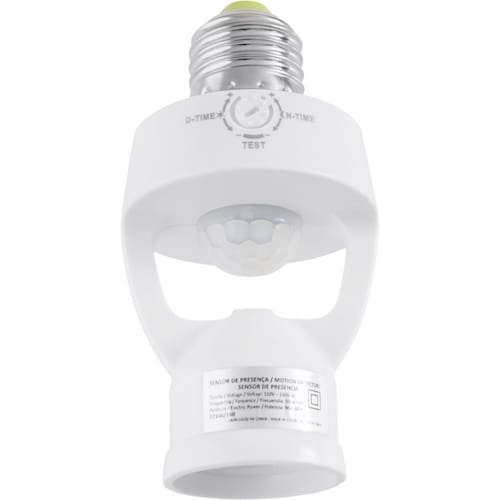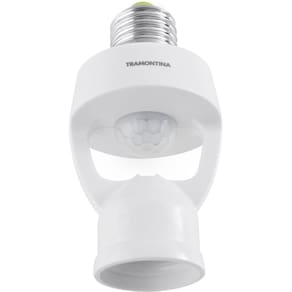 Sensor De Presença 360 Soquete E27 Tramontina Bivolt Com Fotocélula Branco Sensor de Presença 360 Soquete E27 Tramontina Bivolt com Fotocélula Branco O sensor de presença 360 soquete E27 Tramontina bivolt com fotocélula branco é indispensável para garantir uma iluminação efetiva e deixar seus ambientes muito mais práticos. Com alcance de até 7 metros em 360 graus, ele detecta o infravermelho emitido, tanto por pessoas quanto veículos e comanda o acionamento da iluminação por tempo determinado, que pode ser entre 10 segundos e 5 minutos. A escolha ideal para espaços com circulação de pessoas, como corredores, halls de elevadores, escadas e garagens!