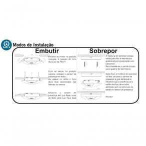 Cobertura: 360 com alcance de até 7m na temperatura ambiente de 25C, em uma altura de aproximadamente 2,4m