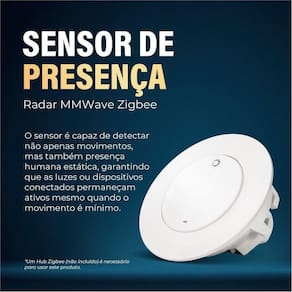 Mais sobre o Produto: Com um amplo ângulo de detecção, o sensor garante uma cobertura eficaz do ambiente, identificando movimentos com precisão. O dispositivo permite o ajuste de sensibilidade e tempo de permanência da detecção, adaptando-se às necessidades específicas de cada local. Receba notificações em tempo real no seu smartphone sobre a detecção de presença, aumentando a segurança e o controle sobre seu espaço.