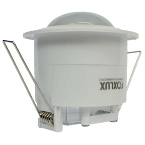 O Sensor de Presença Teto Embutir Foxlux detecta o movimento de pessoas na área de cobertura e acende lâmpadas ligadas a ele. Ao cessar o movimento, as lâmpadas se apagarão no tempo estipulado. Possui fotocélula, que pode ser ajustada para que o interruptor funcione apenas à noite. Além disso, seu ângulo de abrangência é de 360° variando de acordo com a altura da sua instalação. Utilizado em residências e áreas comuns .