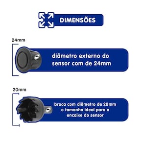 ITENS INCLUSOS: - 01 Serra Copo; - 01 Display sonoro e visual; - 01 Módulo central; - 01 Centralina; - 01 Chicote de ligação; - 04 Sensores; - Acessórios de Instalação; - Manual de Instalação.