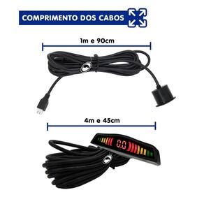 ESPECIFICAÇÕES TÉCNICAS: - Sensor de Estacionamento com 4 pontos de detecção; - Centralina de controle inteligente; - Cor disponível: preto. - Fácil instalação com chicote de ligação.