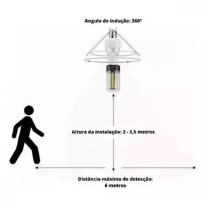 O sensor deve ser instalado em uma altura mínima de 2 metros e máxima de 3,5 metros. Ele possui ângulo de detecção de 360 e alcance de até 6 metros