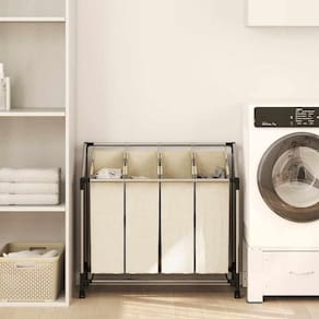 Imagine como economiza energia e é conveniente manter suas roupas sujas organizadas, além de transportá-las facilmente para sua lavanderia, nosso separador de roupas fácil de usar torna isso possível! Este separador de roupas organiza bem qualquer lavanderia, despensa ou armário, tornando-o uma ótima opção para atender às suas necessidades individuais. Possui quatro sacos de separação de tamanho normal que podem ser facilmente removidos para transportar a roupa usando as alças de transporte de aço