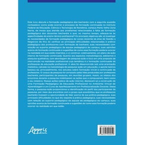 Este livro discute a formação pedagógica dos bacharéis com a seguinte questão norteadora: como pode ocorrer o processo de formação continuada no Instituto Federal de Educação, Ciência e Tecnologia de Rondônia, campus Porto Velho Zona Norte, de modo que atenda aos problemas relacionados à falta de formação peda-gógica dos docentes bacharéis e que, ao mesmo tempo, adeque-se às especi?cida-des do ensino técnico pro?ssional? Os principais objetivos são: a) investigar as necessidades de formação pedagógica do corpo docente da área de Gestão e Negócios do Ifro; b) veri?car as principais di?culdades relacionadas à prática peda-gógica dos professores com formação de bacharel, suas necessidades com relação ao suporte pedagógico da equipe pedagógica do campus, suas opiniões acerca da formação continuada e sugestões de como essa formação poderia ocorrer na realidade em que estão inseridos; e c) construir, coletivamente, um plano de ação interno de formação continuada. Quanto aos aspectos metodológicos, adotamos a pesquisa qualitativa, com abordagem de pesquisa-ação e foco em uma proposta de intervenção na realidade pro?ssional cuja temática é a formação continuada de professores da educação pro?ssional. A obra foi desenvolvida sob uma orientação metódica, calcada na metodologia de pesquisa-ação em educação, o aporte teórico baseou-se, principalmente, nos estudos sobre formação inicial e continuada de professores. O corpus da pesquisa foi composto pelas falas produzidas por profes-sores bacharéis, participantes da pesquisa, em reuniões grupais. Assim, os relatos dos encontros durante a pesquisa mobilizaram as ações que a compuseram, bem como o seu relatório. Dessas ações (plano de ação interno), destacam-se a constru-ção de uma Formação Pedagógica da Educação Pro?ssional no Ambiente Virtual de Aprendizagem e um Curso de Aperfeiçoamento em Pro?ssionalização Docente. Dessa forma, a pesquisa-ação proporcionou a identi?cação do per?l dos participan-tes da pesquisa, por meio dos encontros com o grupo que possibilitou que os professores bacharéis tivessem a oportunidade de falar acerca da sua prática peda-gógica, suas principais di?culdades no que diz respeito à prática pedagógica, suas necessidades com relação ao suporte pedagógico da equipe da pedagógica do campus, suas opiniões acerca da formação continuada e sugestões de como essa formação poderia ocorrer na realidade em que estão.