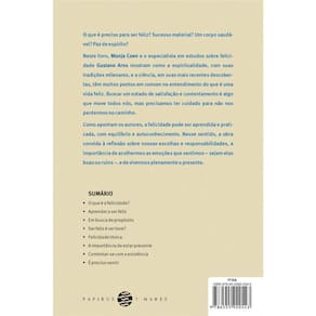 O que é preciso para ser feliz? Sucesso material? Um corpo saudável? Paz de espírito? Nesse livro, Monja Coen e o especialista em estudos sobre felicidade Gustavo Arns mostram como a espiritualidade, com suas tradições milenares, e a ciência, em suas mais recentes descobertas, têm muitos pontos em comum no entendimento do que é uma vida feliz. Buscar um estado de satisfação e contentamento é algo que move todos nós, mas precisamos ter cuidado para não nos perdermos no caminho. Como apontam os autores, a felicidade pode ser aprendida e praticada, com equilíbrio e autoconhecimento. Nesse sentido, a obra convida à reflexão sobre nossas escolhas e responsabilidades, a importância de acolhermos as emoções que sentimos - sejam elas boas ou ruins -, e de vivermos plenamente o presente. Marca: 7 MARES