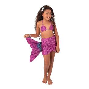 Ideal para crianças que NÃO SABEM NADAR - Menores de 8 anosSaída de praia com cauda de sereia que pode ser usada na água (nesse caso a cauda vai boiar), em casa, no parque e onde mais sua criatividade quiser brincar!Feita de Lycra super resistente a cloro. Tem uma estampa super especial com desenhos de escamas reais e uma linda cauda! Ativar a imaginação e a criação é muito saudável para as crianças. Pensando nisso, e respeitando cada fase da criança, fizemos este modelo sem monofin para que elas possam brincar na água e fora dela cantando e curtindo como uma sereia!Preço por Kit de Saia de SereiaO kit inclui: Sainha de sereia, Top de concha e Calcinha do biquíni.Composição da Cauda de Sereia:90% Poliester10% ElastanoComposição do forro:100% poliamidaTamanhos: 2, 4, 6 e 8Os tamanhos são correspondentes ao manequim que a criança veste de roupas, conforme a idade.