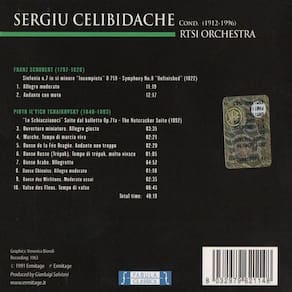 Da série FABULA CLÁSSICA, que reúne obras de grandes mestres, executadas por consagrados intérpretes, em uma linda embalagem e encarte em Digipack. O maestro Sergiu Celibidache conduz a Orquestra da Radio Televisão da Suiça Italiana executando a Sinfonia No 8 A Inacabadade Schubert e o balé Quebra Nozes de Tcahicovsky. Symphony No.8 in B minor Unfinished, D.759 1822 TRACKLIST: 1 Allegro Moderato 2 Andante Con Moto - 3 Ouverture Miniature. Allegro Giusto 4 Marche. Tempo Di Marcia Viva 5 Danse de la Fée Dragée. Andante Non Troppo 6 Dans Russe Trépak . Tempo di Trepak, Molto Vivace 7 Danse Arabe. Allegretto 8 Danse Chinoise. Allegro Moderato 9 Danse Des Mirlitons. Moderato Assai 10 Valse Des Fleurs. Tempo di Valse