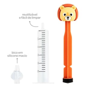 Modo de usar: Adicione 5 a 10ml de soro fisiológico em temperatura ambiente na seringa. Com o bebê sentado e o tronco ligeiramente inclinado para frente, introduza suavemente a ponteira de silicone na narina e aplique o liquido, que entra por um lado e escoa pelo outro. Agora seu bebê pode respirar aliviado.