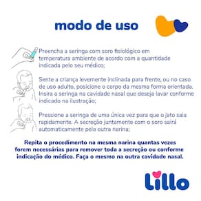 Kit Seringa de Lavagem Nasal Lillo Colorida 10ml – Com Ponteira de Silicone Macia – 2 Unidades Respiração Livre e Conforto para o Seu Bebê A lavagem nasal é essencial para a saúde respiratória e o bem