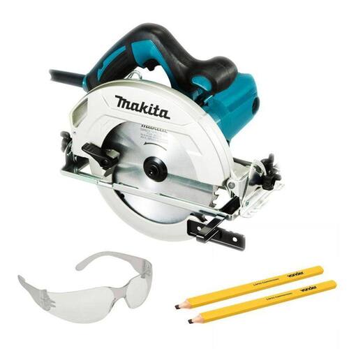 SERRA CIRCULAR 7.1/4 MAKITA HS7010 1600w + 01 ÓCULOS E 02 LÁPIS CARACTERÍSTICAS -ajuste de ângulo da base; -motor de alta potência; -cortes rápidos; -base de alumínio; -dupla isolação; -adaptável a coletor/aspirador de pó. ESPECIFICAÇÕES -potência: 1.600W; -rotações por minuto: 5.500; -diâmetro da Lâmina: 185mm; -capacidade de corte; - 90º: 65mm; - 45º: 44mm; -dimensões (C x L x A): 300 x 240 x 261mm; -peso: 4kg. ITENS QUE ACOMPANHAM -disco de corte e guia lateral; -02 Lápis; -óculos de proteção.