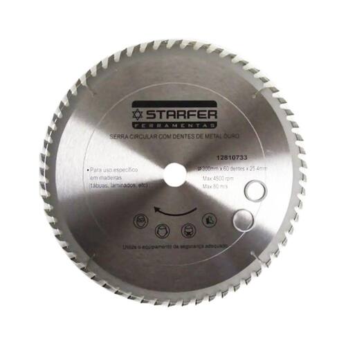 O Disco de Serra Circular é ideal para ser utilizado juntamente com serras circulares nos trabalhos de corte em madeiras, chapas laminadas, aglomerados, compensados, MDF, entre outros. Indicado para cortar madeiras finas que necessitem de melhor acabamento e precisão.60 Dentes com Pontas (BIT) em Widea.CARACTERÍSTICAS TÉCNICAS:Material: Aço Carbono e Metal DuroMedidas: 300mm (12")Número de dentes: 60Diâmetro do furo: 25,4mmLimite máximo: 4500 rpm - 80 m/sEspessura do disco: 2,5mmEspessura de corte: 3,8mmMarca: StarferRef.: 12810733