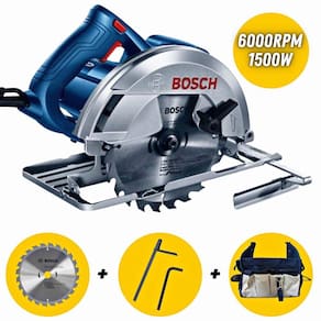 A Serra Circular Bosch GKS 150, com 1500W de potência, é ideal para as principais aplicações e com um preço que cabe no seu bolso. Conta com recurso contra travamento para maior segurança, além de punho auxiliar robusto que garante maior estabilidade durante o corte. O pó fica longe do usuário graças a sua saída de pó eficiente. As escovas de carvão são facilmente acessadas, fazendo com que sua troca seja simples e fácil. Indicados para Carpinteiros, pedreiros, instaladores em geral, vidraceiros e marceneiros.