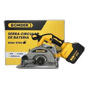Serra Circular Elétrica Com 2 Baterias 21v - BOMDER Pode ser Utilizado no corte de azulejos, chapas, plástico, madeira e etc. A Serra Circular, conta com 3 velocidades diferentes e ângulo de trabalho ajustável até 45, além de punho auxiliar robusto, que proporciona maior estabilidade durante o corte. Informações Técnicas: Motor sem escovas Bateria de lítio grau industrial Tela metálica para pó Rolamentos de precisão dupla Velocidade regulável: 3 velocidades Ângulo ajustável de 0 a 45 Diâmetro do disco: 125mm Profundidade ajustável Itens Inclusos: 1x Serra Circular Portátil 21V 3x Lâminas de corte 1x Chave para Porca 1x Chave de Biela 1x Carregador 2x Bateria Marca: Não Informado