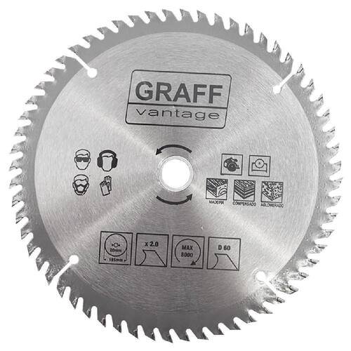 Serra Circular com Pastilha de Metal Duro para Madeira 7.1/4''60D 579,0005 - Graff Vantage, para compensados e aglomerados, com pastilhas de metal duro para corte em madeira. Marca: Graff Ean: 7908745605555