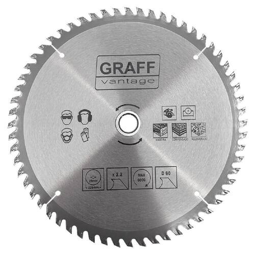 Serra Circular Para Madeira 9.1/4''X60D 79,0008 Graff Vantage Serra Circular com Pastilha de Metal Duro para Madeira 9.1/4''x60d 579,0008 - Graff Vantage, para compensados e aglomerados, com pastilhas de metal duro para corte em madeira.