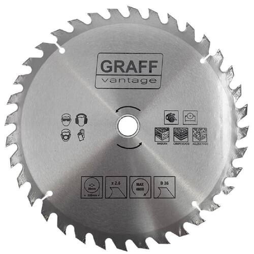 Serra Circular com Pastilha de Metal Duro para Madeira 12''36D 579,0014 - Graff Vantage , para compensados e aglomerados, com pastilhas de metal duro para corte em madeira.