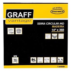 Serra Circular Para Madeira 14 X 36D 579,0019 Graff Vantage Serra circular, para madeira, compensados e aglomerados, com pastilhas de metal duro para corte em madeira.
