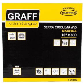 Serra Circular Para Madeira 16 X 80D 579,0027 Graff Vantage Serra circular, para madeira, compensados e aglomerados, com pastilhas de metal duro para corte em madeira.