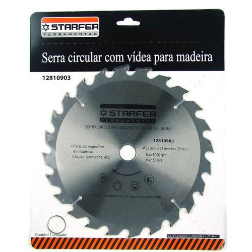 - Dimensões: Diâmetro Do Disco 235mm X Diâmetro Do Furo 25,4mm; - Limite Máximo 6000rpm, 80m/S. - Embalagem: Cartela Duplo. Marca: Starfer