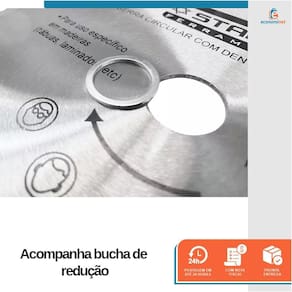 Versatilidade e Segurança: Compatível com diversos modelos de serras circulares, oferecendo flexibilidade para seus projetos. Acompanha buchas de redução para ajuste preciso em diferentes serras. Design ergonômico e leve para maior conforto e segurança durante o uso.