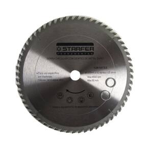 CARACTERÍSTICAS TÉCNICAS: Material: Aço carbono e metal duro Medidas: 300mm - 12 Número de dentes wídia : 60 Diâmetro do furo: 30mm Limite máximo: 4500 rpm - 80 m/s Espessura do disco: 2,5mm Espessura de corte: 3,8mm Marca: Starfer Ref.: 12810733 Ean: 7891638044893